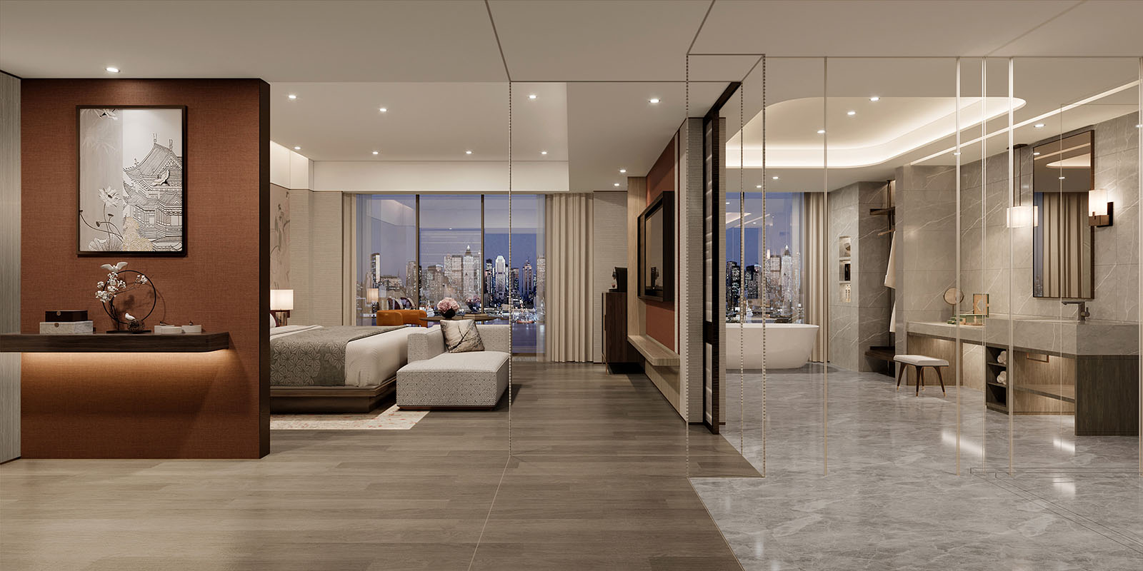 項目建筑面積約12000㎡,酒店室內裝修采用綠可裝配式整裝體...